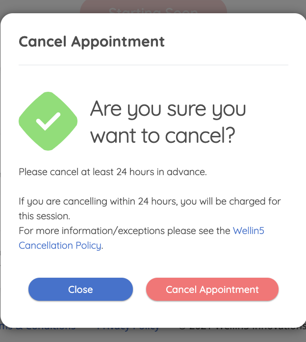 If you are not able to provide 24 hours notice for a cancellation due to a medical or family emergency or a natural calamity please immediately reach out to our client services team at contact@wellin5.com.