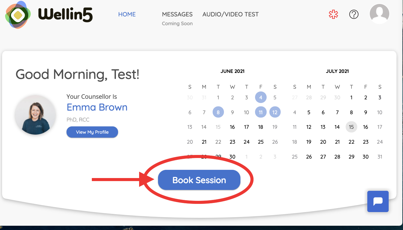 To reschedule your appointment, go to 'Home' at the top of your screen and click the blue 'Book Session' button to rebook. This will allow you to choose a new date and time for your session.